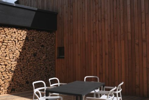 Area of each chalet is approx. 100 m2, there are two bedrooms, living room with a fireplace type stove, kitchen with a dining area, 2 toilets, a bathroom with a shower bath, 2 TV sets.